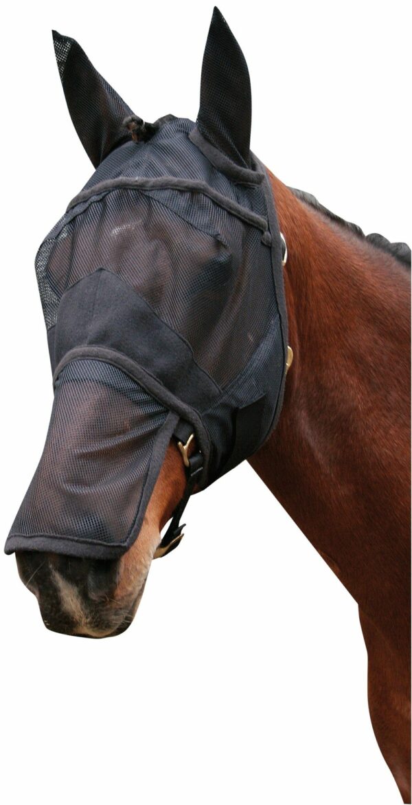 Soepel masker met coupenaden bij de ogen. Vast neusdeel. Klittenbandsluiting bij de keel.